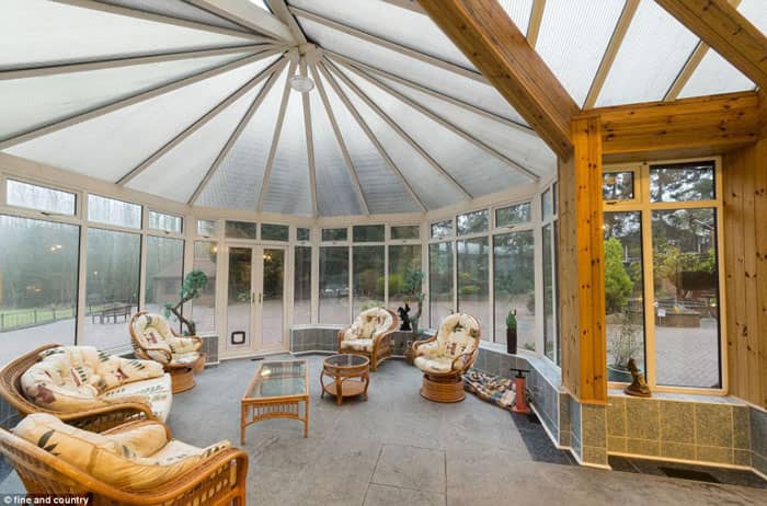 • It also has a 17-acre garden with a fishing lake, timber lodge, two storey garage and all-weather tennis court
